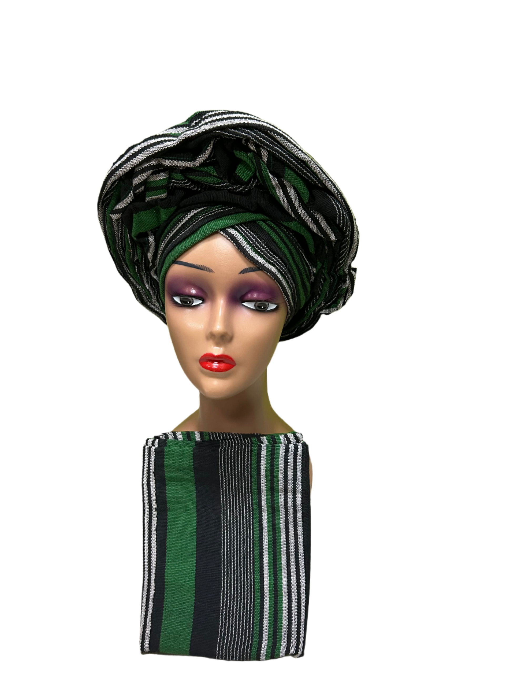 This Aso-Oke Auto Gele is both unique and beautiful, making it a stunning addition to any outfit. Its intricate design and high-quality materials will surely elevate any look, making you stand out in a crowd. Transform your style effortlessly with this versatile and elegant accessory.