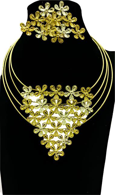 This beautiful jewelry set includes an ear ring, ring, necklace, and bracelet. Elevate your style with these elegant pieces, perfect for any occasion. Crafted with expert precision, these accessories are sure to add a touch of glamour to any outfit. Enhance your collection with Combine.