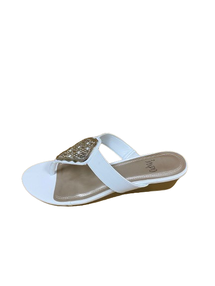 This gold and white shoe is the perfect blend of eye-catching design and unique style. Its distinctive color palette is sure to turn heads, while its one-of-a-kind design sets you apart from the crowd. Elevate any outfit with this must-have shoe.