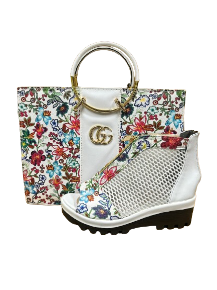 Stand out from the crowd with our unique flower pattern shoe and bags. Elevate your style with a one-of-a-kind look that is sure to catch attention. Perfect for adding a touch of personality to any outfit.
