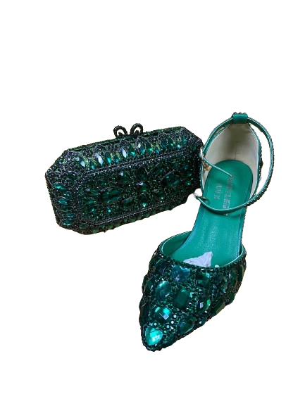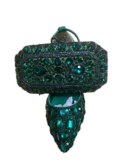 green crystal shoe and bag