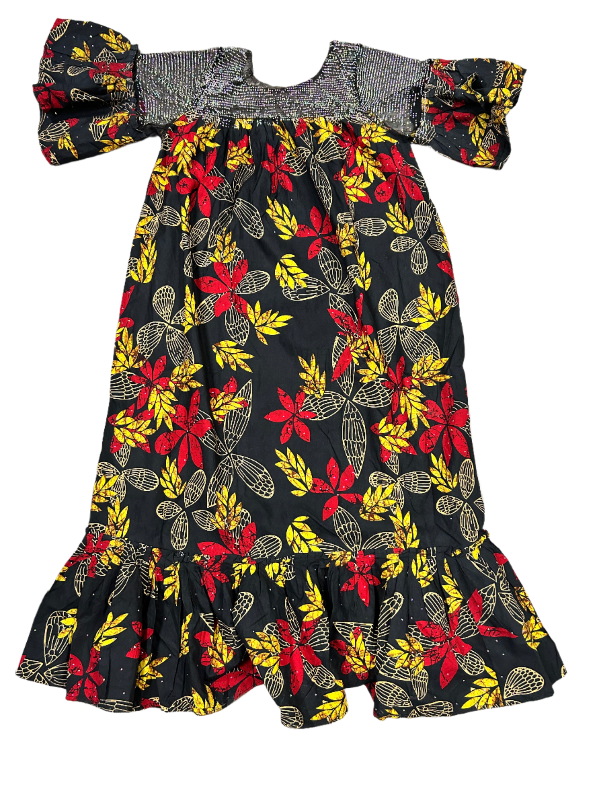 The red and yellow leaf is a colorful addition to any wardrobe, with its vibrant hues adding a pop of color to any outfit. This go-to dress is perfect for any occasion, making it a versatile and stylish choice.